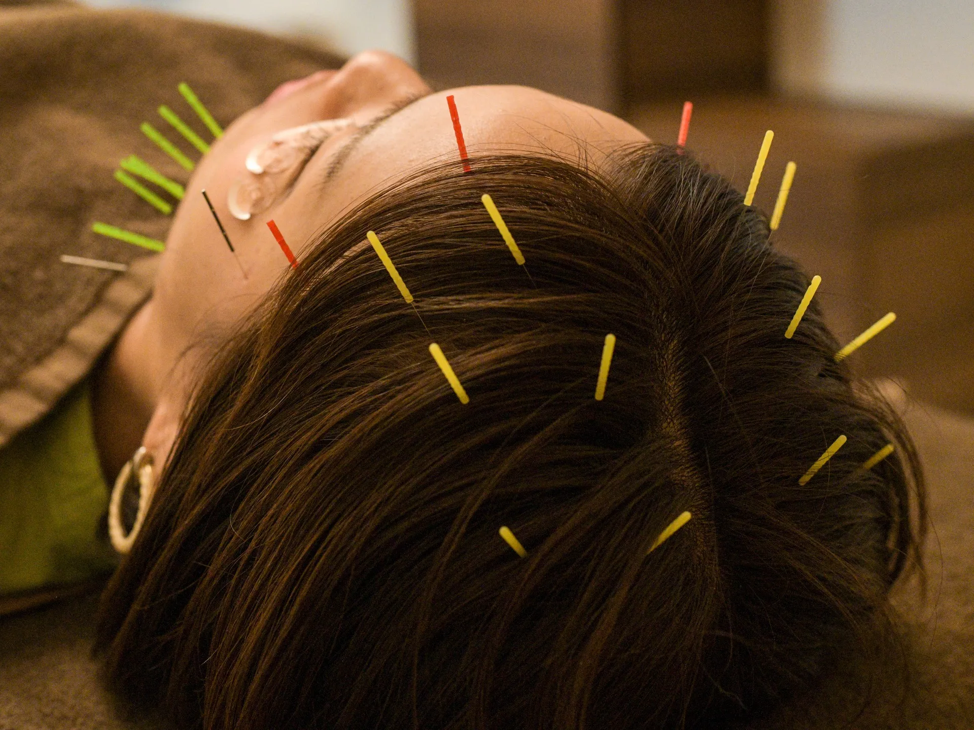 上のお写真は美容鍼と頭の鍼を同時に施術したものになります。